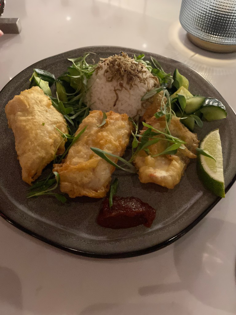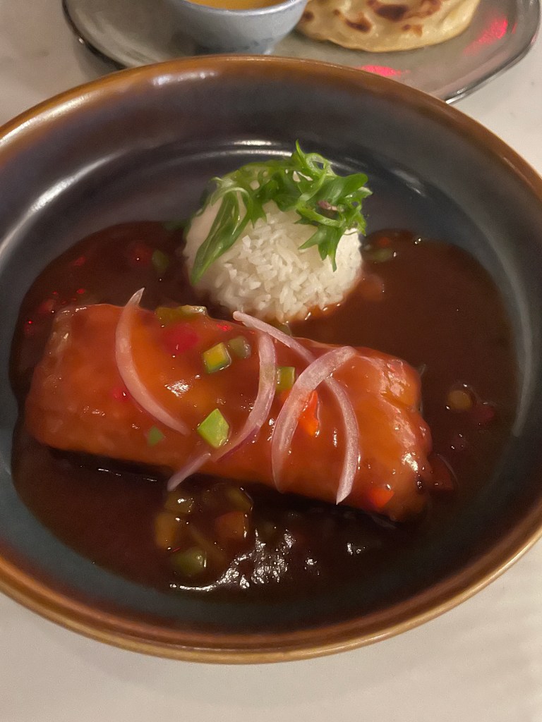 We wanted to sample a bit of everything so we ordered 2 entrees and 2 of their appetizers, which they categorized under “Singaporean street food”. The roti prata was made perfectly, soft with a crisp outer shell with great flavor. The curry sauce was a bit light for my taste, I would have liked it to be a little stronger in flavor. We also ordered the Sweet and Sour Pork, which I enjoyed very much. I did not expect pork belly to be used for it, but it was a pleasant surprise. The sauce was well balanced and not too heavy, and the jasmine rice that came was it was also cooked perfectly. Overall a very enjoyable dish.
